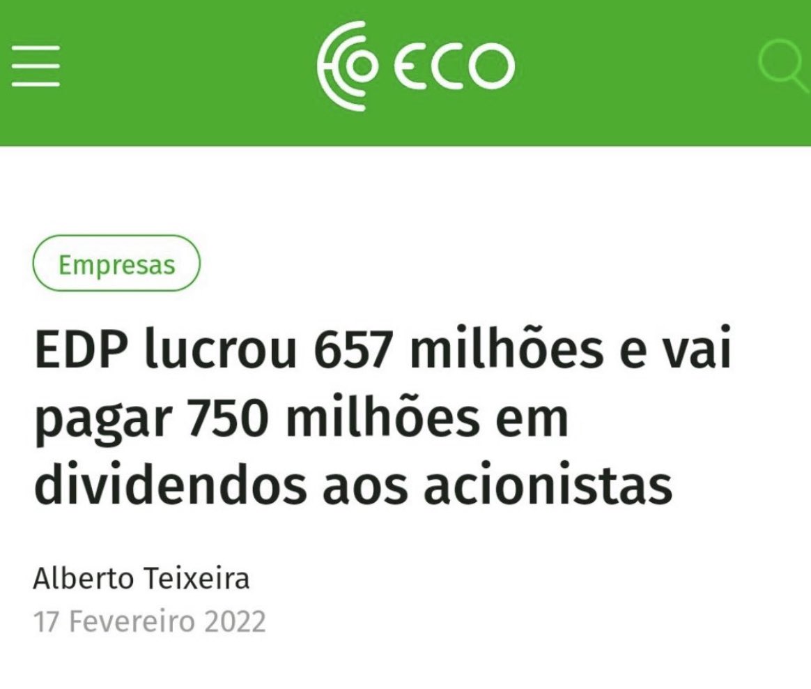 https://eco.sapo.pt/2022/05/05/edp-com-prejuizo-de-76-milhoes-no-primeiro-trimestre/Um problema! Estamos a falar numa empresa que vale 25% do nosso mercado bolsista que ronda os 80 mil milhões de euros. E pior ainda se incluirmos a EDP renováveis, então o peso das duas sobe para 50% do mercado ao valer cada uma 20 mil milhões de euros!!!!!!