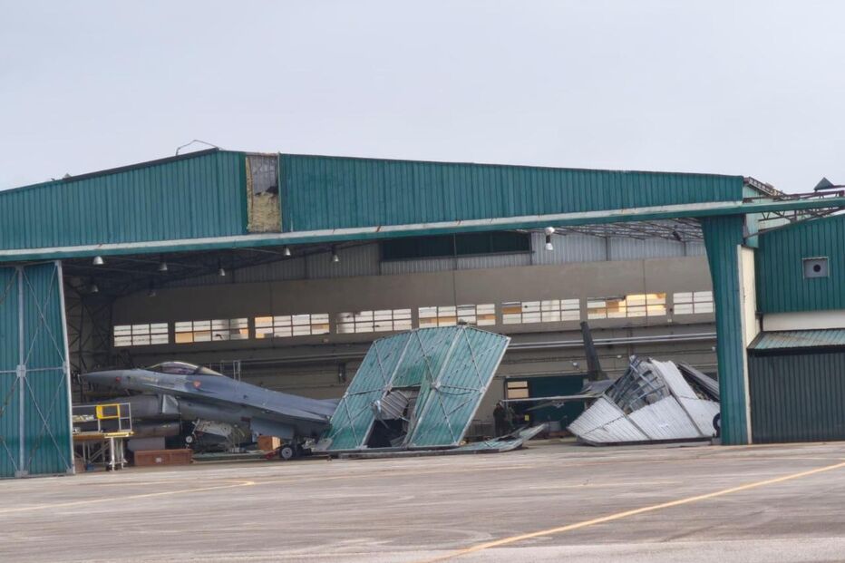 Andam a circular nalgumas redes fotos sobre a depressão kristin que teria causado a queda de um portão de hangar em cima de 2 F-16 em manutenção. É possível que seja fake mas a mim não me parece obvio e normalmente apanho imagens IA facilmente.